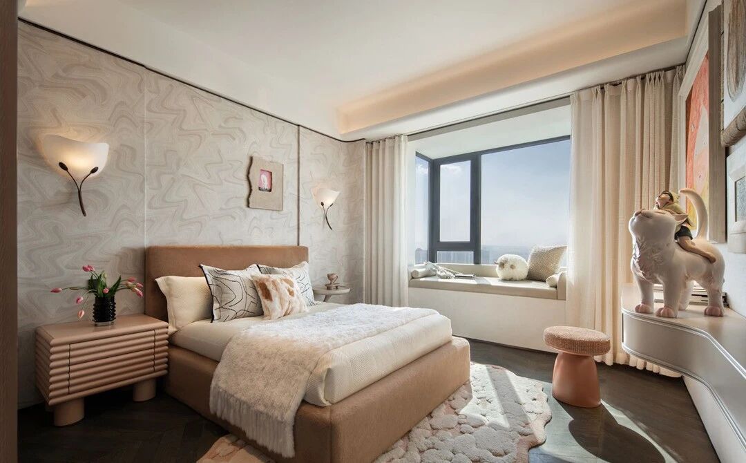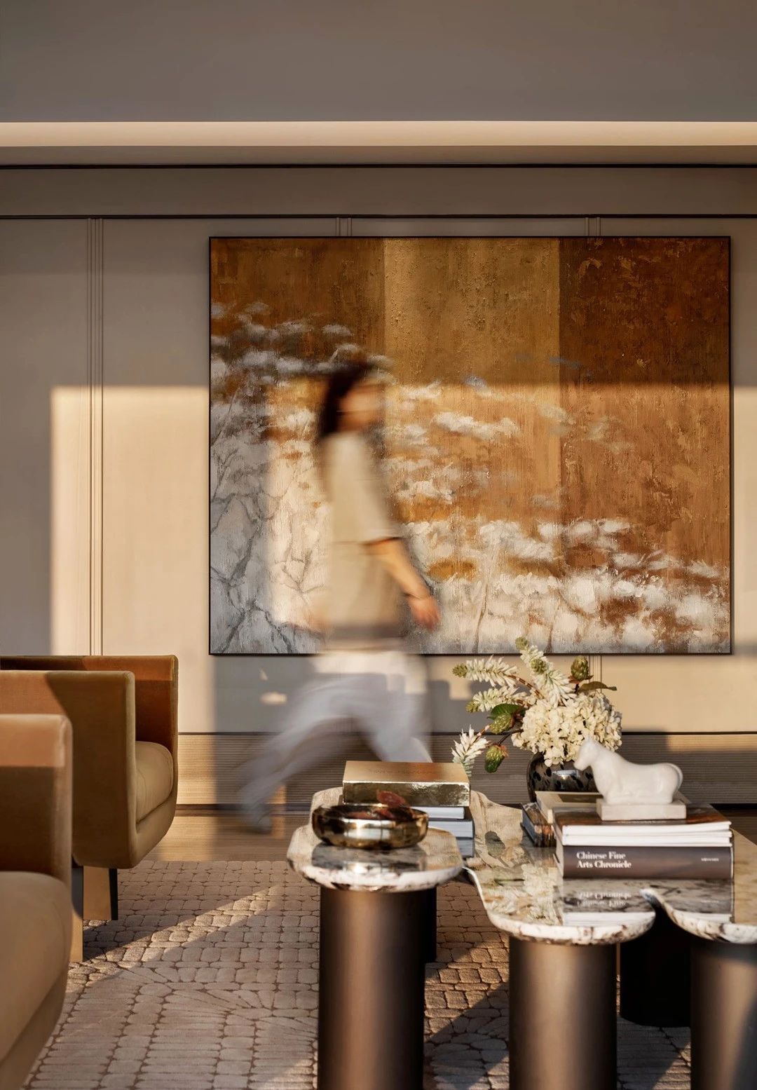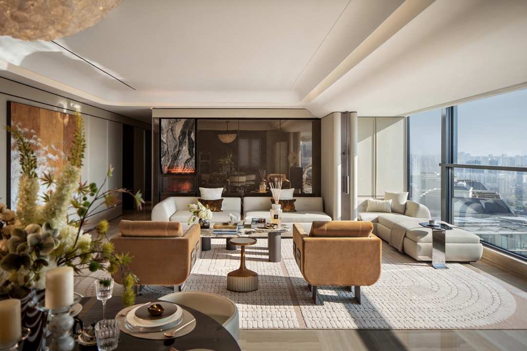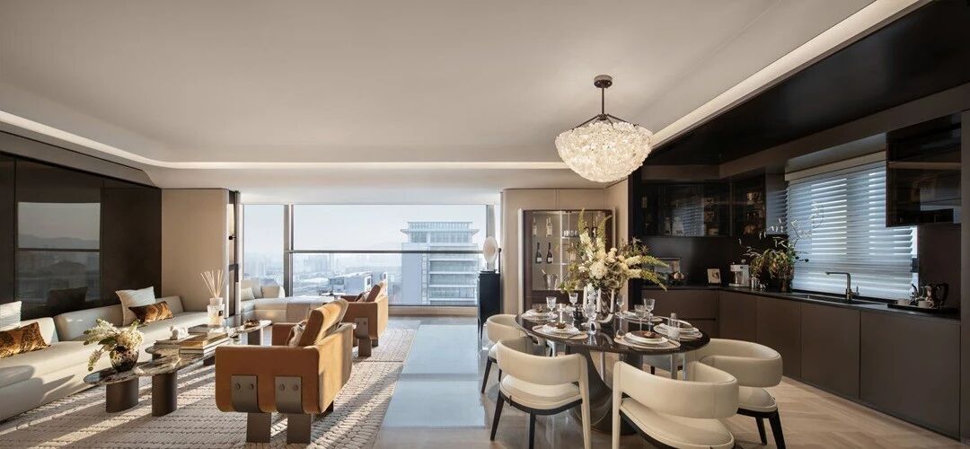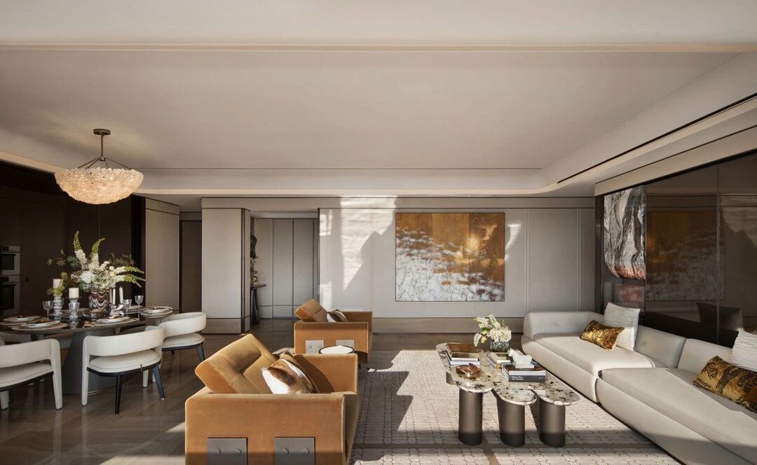 設計理念:設計師采用疏密得體的紋理打造相互克制的虛實節奏主題,仔細的呈現日常藍圖,配合細美的編織肌理和藝術注腳等賦予生活一種藝術解構。運用純粹大理石打造玄關區域,在灰色襯托中彰顯迂回靈動 的肌理,由此形成內外聯動的經典標志。以輕松的留白處理賦予大客廳獨特的“待客 ”氣息。結合烏托邦式的理想概念,賦予第三角度視感一種端莊儀式感,從而根據傳統禮儀和規律,呈現相對開放的包容性。