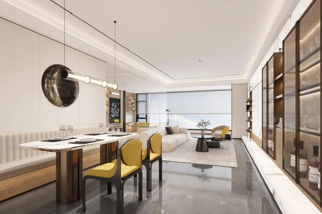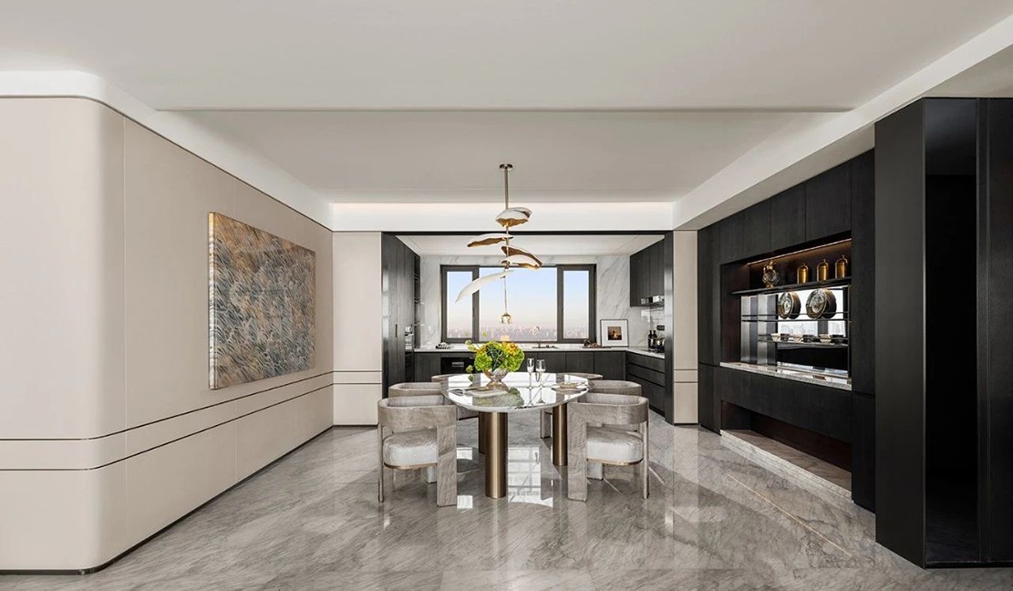 設計理念:客廳作為家的心臟地帶,不僅是家人歡聚共享天倫之樂的溫馨空間,更是藝術與生活的完美融合。一幅掛畫,一件飾品,無不訴說著主人的獨特品味與對生活的熱愛。引入“無界設計”理念,采用 LDKG 一體化設計將客廳、餐廳、廚房和陽臺空間連接貫通,提高空間通透性、空間利用率和互動性,實現家庭社交場景多元化,體現項目獨有的尊享體驗。