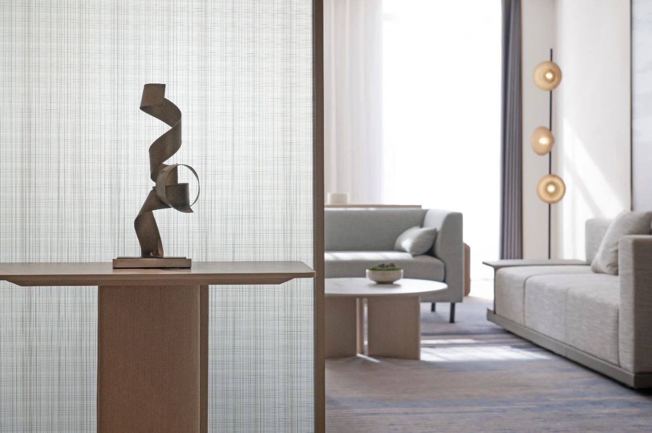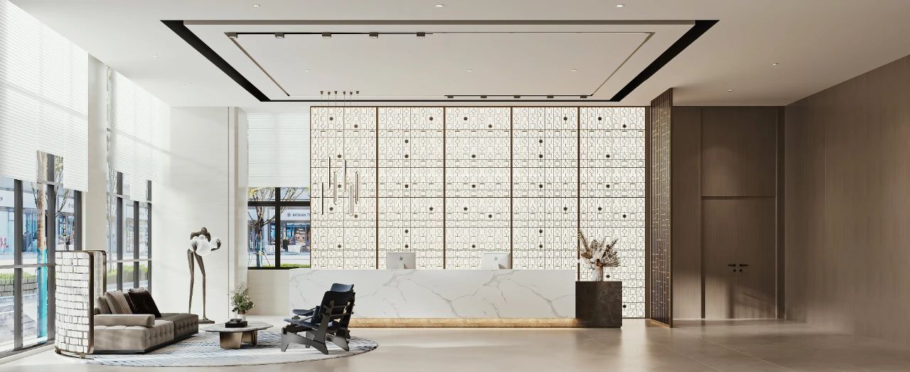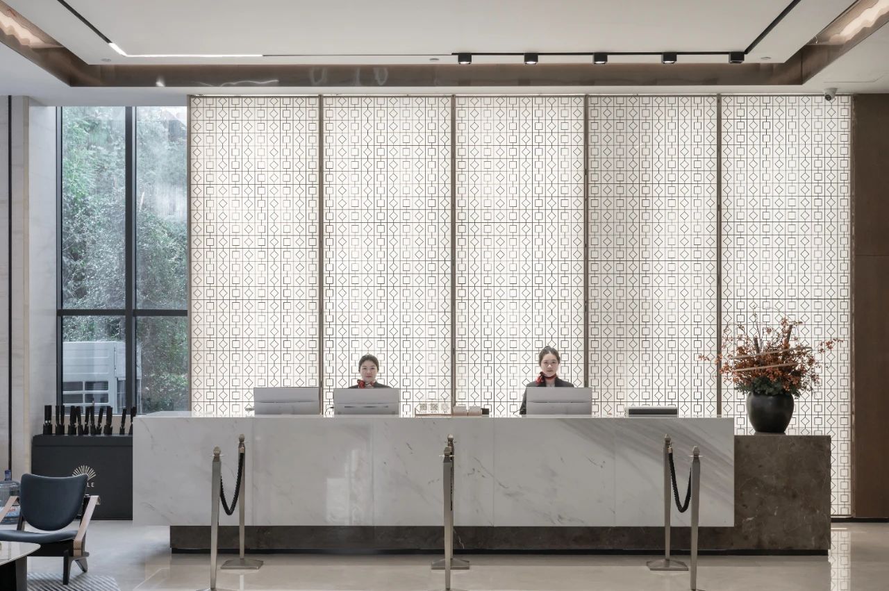 設計理念:首層大廳提供了一個理想的過渡空間,將客人帶離繁忙的街道,并為他們開啟美好的酒店體驗。通過材質的搭配選擇、企業色彩的選擇,以及定制的金屬背景墻形成名副其實的藝術之旅,從而探索在地與人文、自然與藝術、真實與想象之間的聯系。