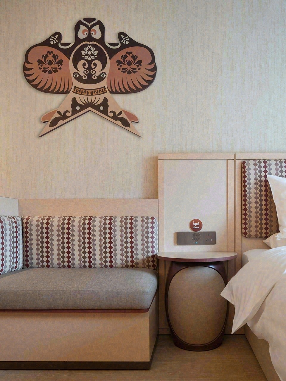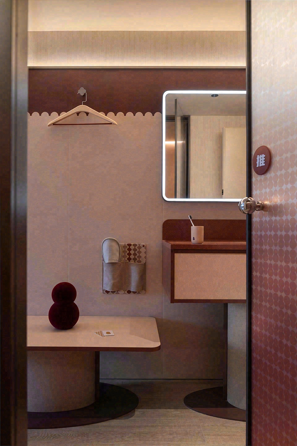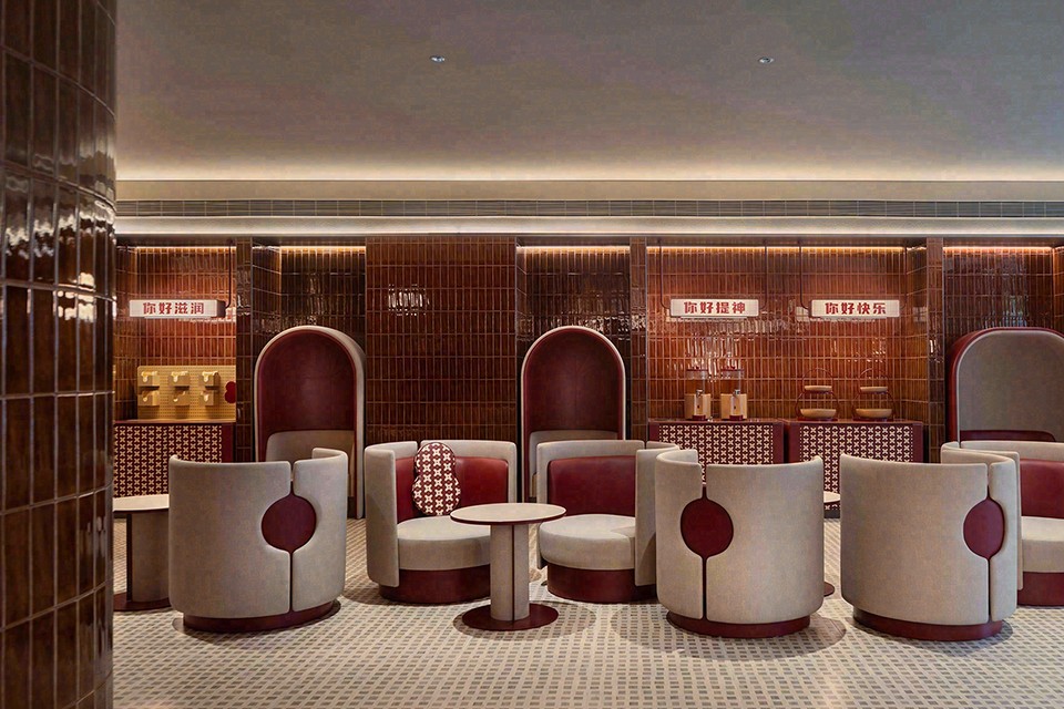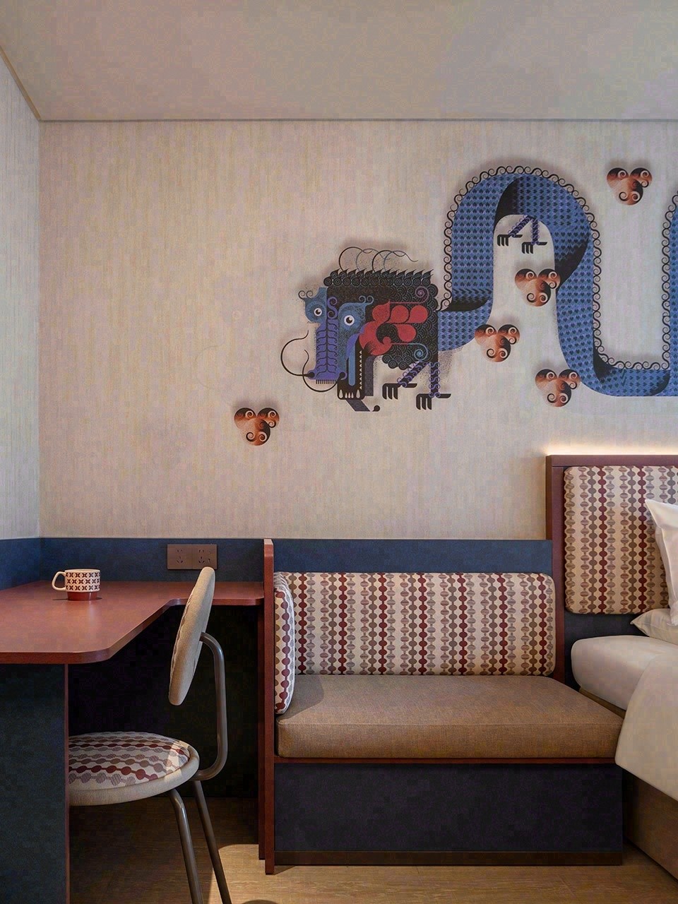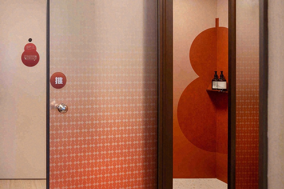 設計理念:酒店作為接待的服務體系,「接待」是重心,我們將融入在街道市集的「你好」酒店沿街面敞開,歡迎著賓客,也歡迎周圍的鄰里。空間中大量的文字口號,以非常中國式的表達與所有賓客們對話,顛覆了既定的前臺以及休憩大堂,兼具功能的同時,也希望調動著旅客的情緒共鳴,“龐克養生”也是一份為你好的貼心。