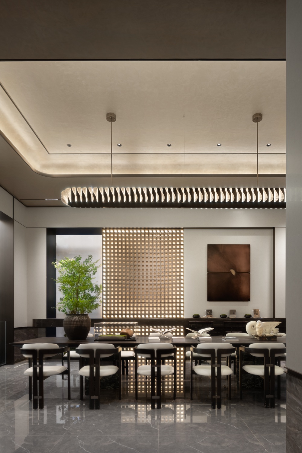 設計理念:本案將自然、藝術、科技相結合,以現代簡約的設計手法與當代美學相糅合,運用色彩與肌理提煉現代時尚的表現形式,塑造時尚尊貴的空間氛圍。