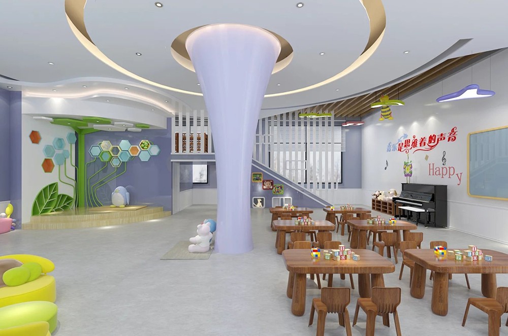 設計理念:在“夢幻啟航站”,我們精心打造了一個充滿想象與探索的幼兒園空間。墻面采用溫馨的馬卡龍色系,搭配卡通動物圖案的壁紙,讓每個孩子仿佛置身于童話世界。