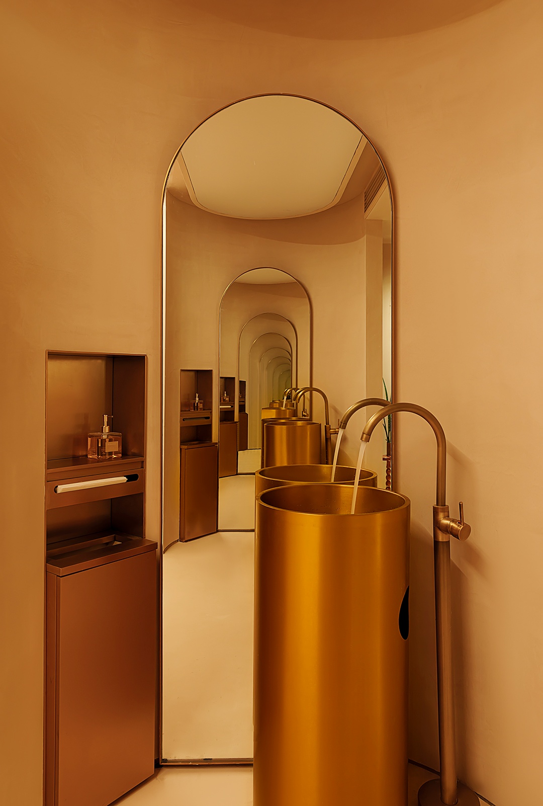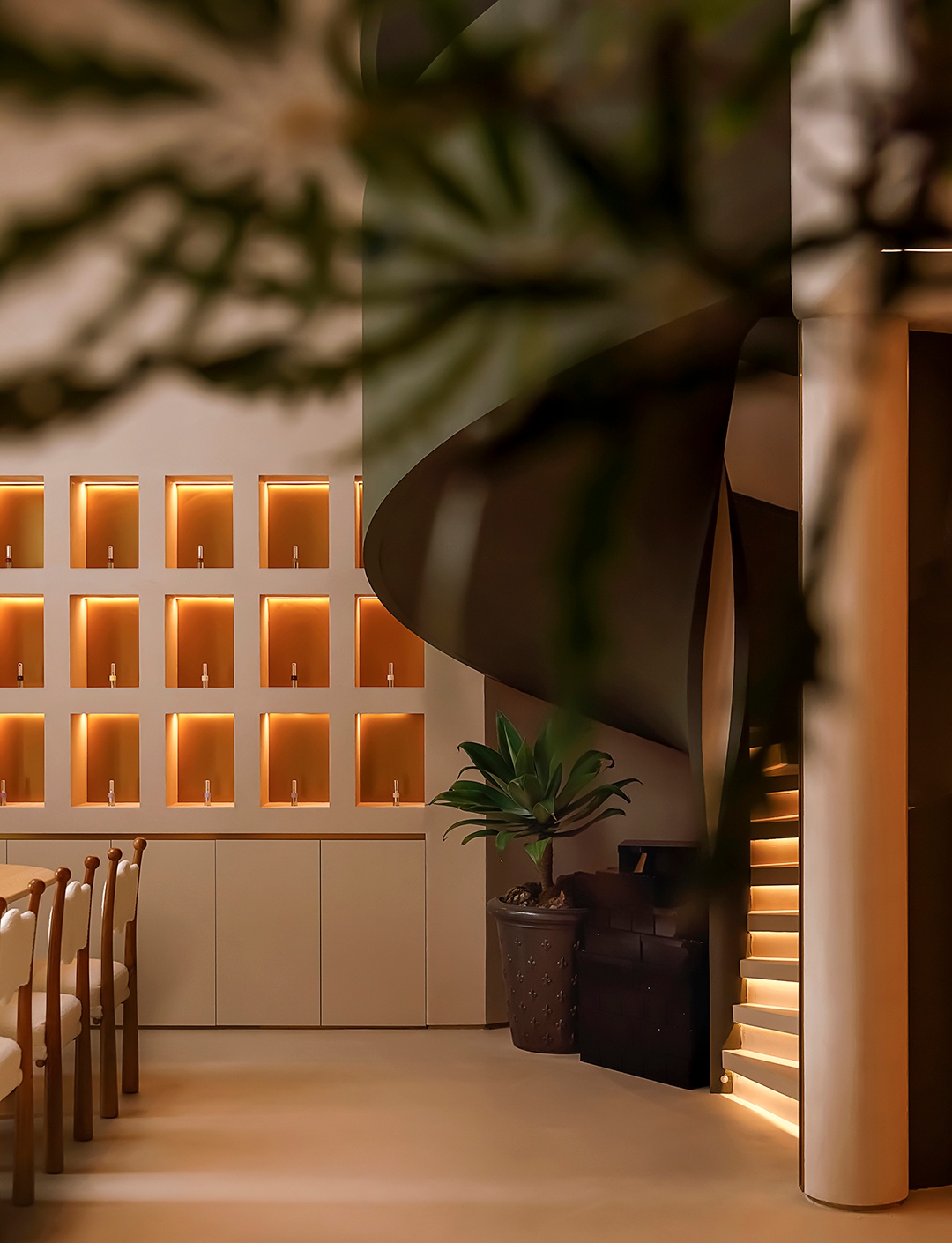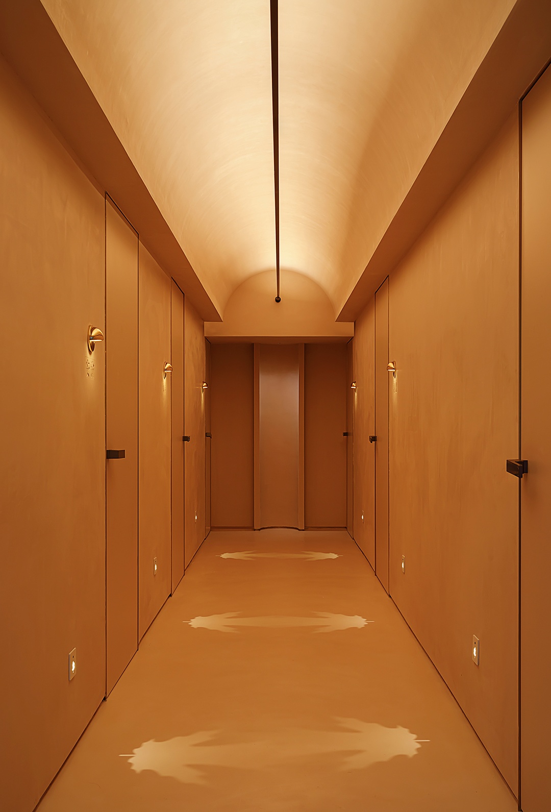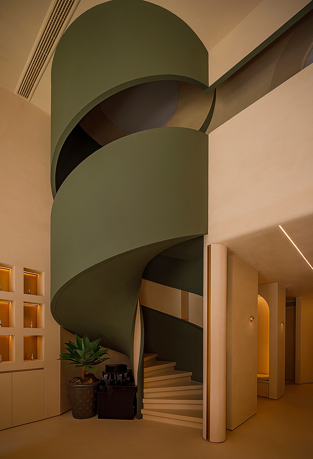 設計理念:避開梁位,實現層高和為使空間利用率大,又保留空間的縱深感,接待區采用了挑空的處理形式。采用趨勢向里的大弧度造型,讓眼睛禁不住向里窺探。簡潔的線條,同色的墻頂和地面,將空間留白。為了在空間里增加生命力,運用燈光的變換,將小空間做大,使顧客身處其中時,能夠舒緩地、細致入微地去體驗服務。